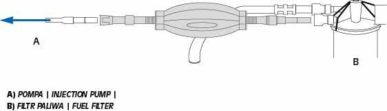 - Na prevádzku sa pumpa stláča, aby bol vzduch odsávaný zo systému zásobovania palivom