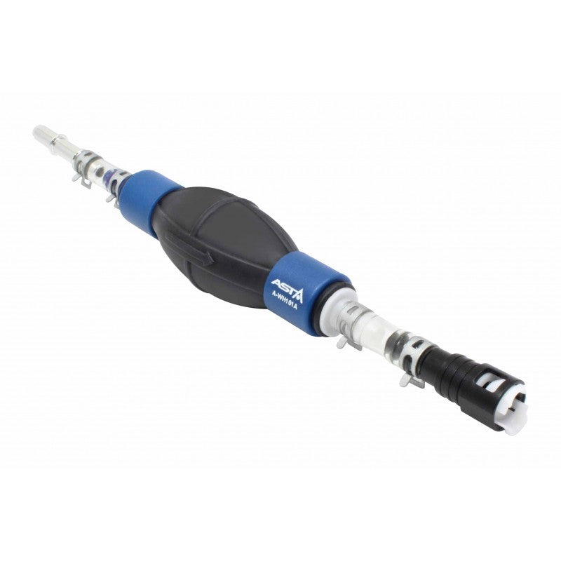 RUČNÁ PUMPA NA NASÁVANIE PRE PALIVOVÝ SYSTÉM DIESELOVÝCH MOTOROV je vybavená rýchlospojkou pre palivové čerpadlá používané na čerpanie a odvzdušňovanie palivových systémov pri výmene filtra a iných prácach súvisiacich s palivovým systémom.