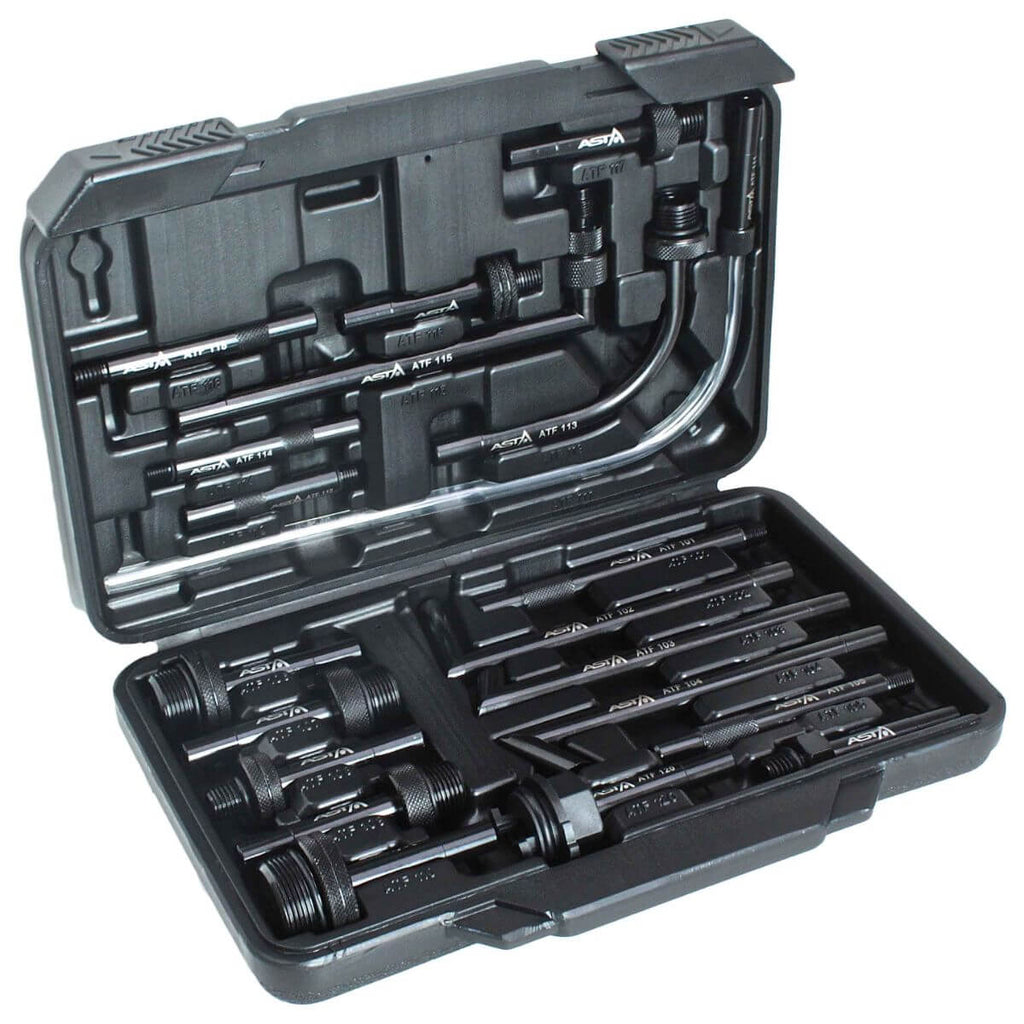 RUČNÁ PUMPA NA VÝMENU OLEJA PRE PREVODOVKU 20 KUSOV ASTA sa používa na plnenie automatických prevodoviek a diferenciálov olejom. Navyše je v sade 20 adaptérov pre široký rozsah automatických prevodoviek.