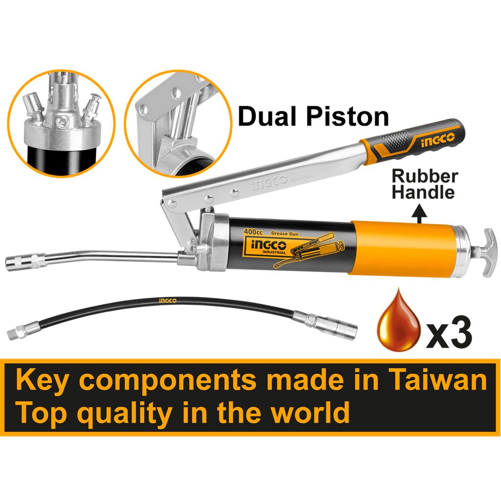 Ručná mazacia pištoľ - maznica s 2 piestami, 400ml Ingco