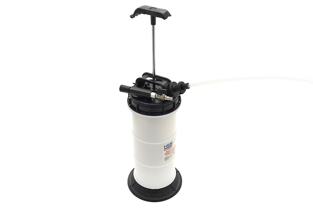 TÁTO RUČNÁ / PNEUMATICKÁ PUMPA NA PREČERPÁVANIE OLEJA A INÝCH KVAPALÍN 6L HBM je užitočná na dávkovanie, výmenu alebo odstraňovanie kvapalín. Pumpa je vybavená flexibilnou hadičkou a viečkom proti úniku.