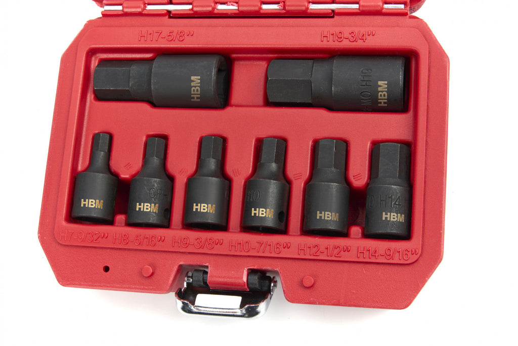 SADA IMBUS NÁRAZOVÝCH BITOV 2.5-19 MM 1/4-1/2 14 KUSOV HBM MACHINES HOLANDSKO je zabalená v kovovej úložnej krabici, takže máte vždy kompletnú sadu. Zásuvkové kľúče sú vyrobené z jedného kusu chróm-molybdénu. Táto extrémne odolná kombinácia voči nárazom zaisťuje dlhú životnosť.