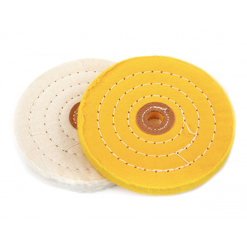 SADA 2 LEŠTIACICH KOTÚČOV NA PREDLEŠTENIE A DOLEŠTENIE 150MM HBM obsahuje kotúče s priemerom 150 mm a rozmerom hriadeľa 15 mm. Žltý kotúč je vhodný na predleštenie a biely kotúč na následné leštenie. Sú ideálne pre nehrdzavejúcu oceľ, Cr-V, Cr-Mo, meď, hliník, liatinu, mosadz a ďalšie materiály.