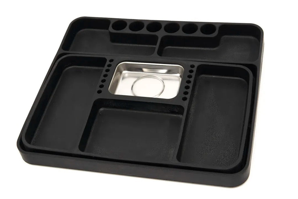 TÁTO SÚPRAVA 2 ORGANIZAČNÝCH BOXOV NA NÁRADIE 272X240X25 MM, ROBUSTNÝCH, MAGNETICKÝCH, NA ULOŽENIE NÁSTROJOV A DIELCOV, HBM HOLANDSKO je navrhnutá na efektívne a bezpečné skladovanie náradia a drobných súčiastok. Vyrobené z odolných materiálov, ako je guma a nehrdzavejúca oceľ, tieto boxy poskytujú vysokú odolnosť voči opotrebovaniu. Boxy sú vybavené magnetickou základňou, ktorá zaručuje pevné uchytenie na kovových povrchoch a stabilitu počas používania. Väčší box má rozmery 272 x 240 x 25 mm a menší 260 x 156 x 22 mm.