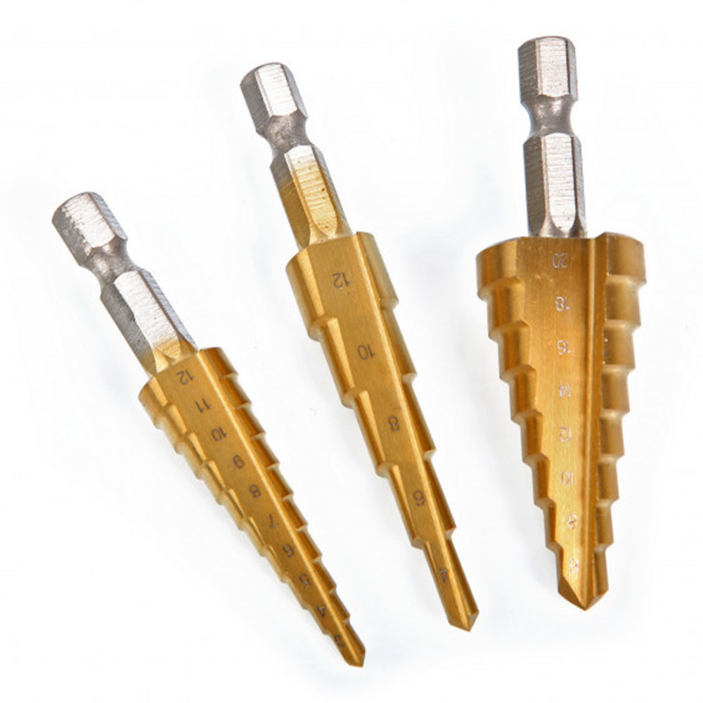 Sada 3 stupňovitých vrtákov HSS s hexagonálnym úchytom