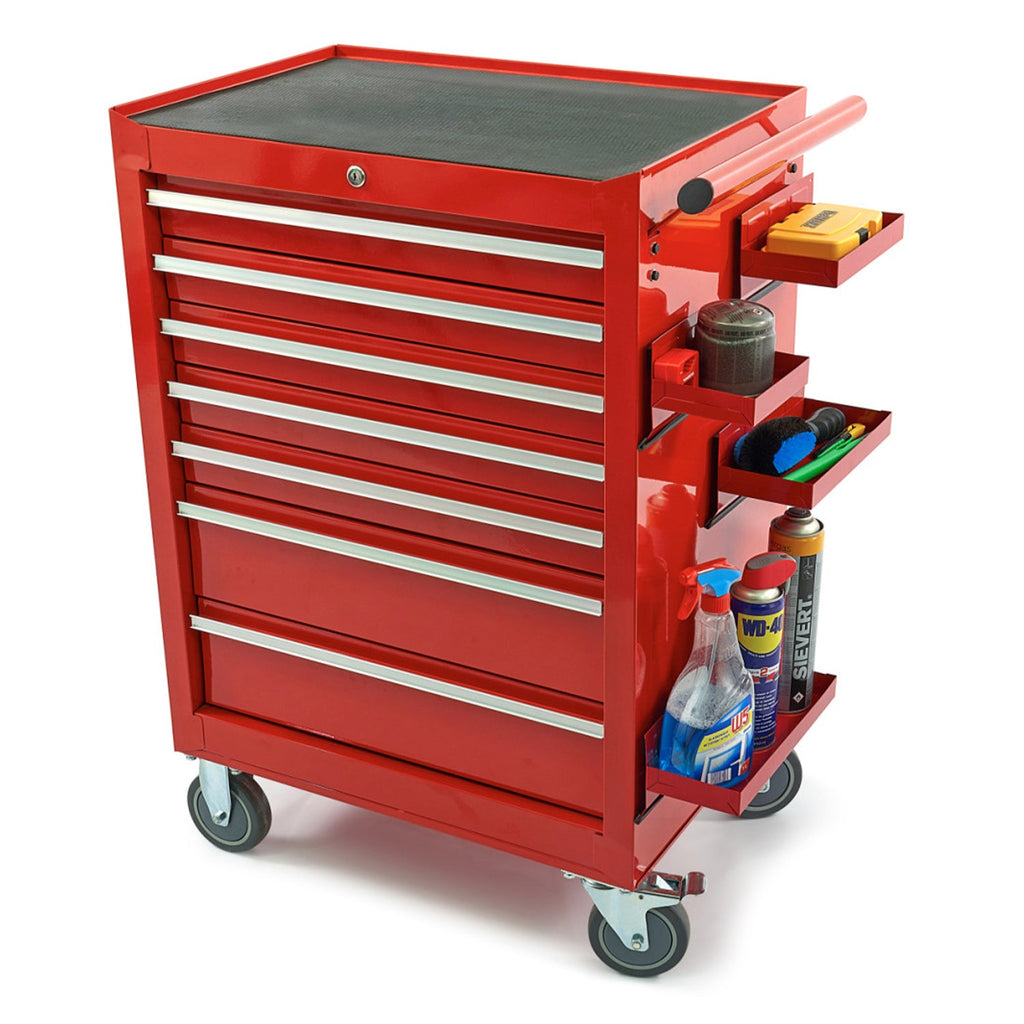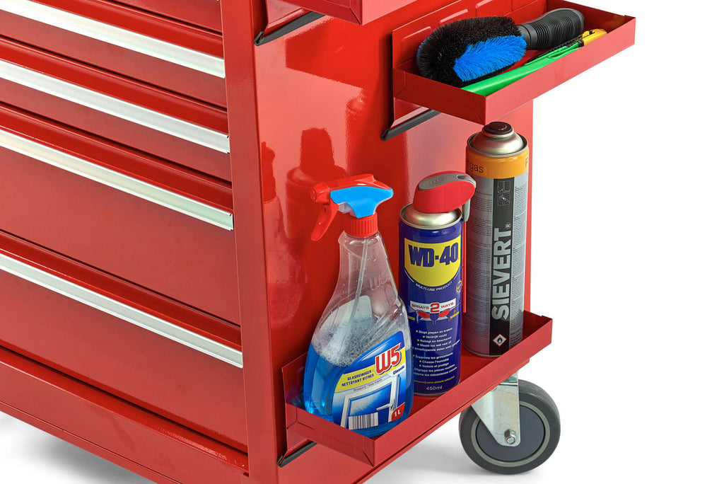 TÁTO SÚPRAVA 4 MAGNETICKÝCH POLÍC PRE SKRIŇU NA NÁRADIE ČERVENÁ obsahuje 4 praktické police, ktoré možno jednoducho pripevniť pomocou magnetov. Zadná časť s výškou 12 cm je vybavená magnetmi a gumovým pásom.