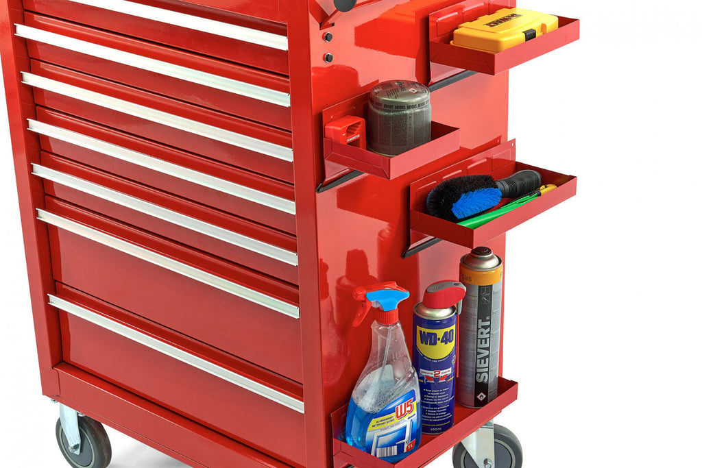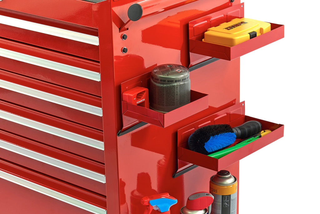 Sada 4 magnetických políc na skrinku na náradie, červená