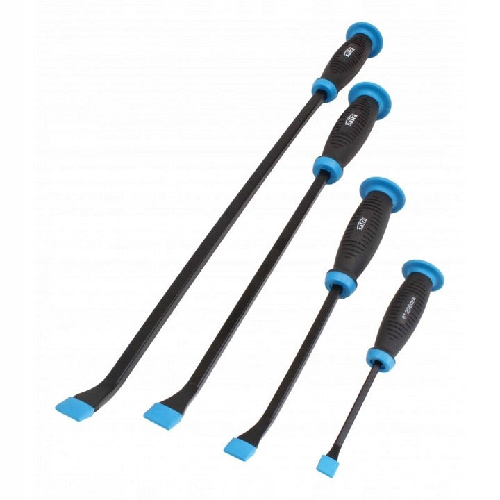 TÁTO SADA 4 MECHANICKÝCH PÁČIDIEL SATRA je vyrobená z uhlíkovej ocele s čiernym práškovým nástrekom, je kovaná a tepelne spracovaná, aby poskytovala najlepšie výkonové vlastnosti a dlhú životnosť. Rukoväť s dvojfarebným pohodlným úchopom s kladivovou hlavou a plastovým krytom čepele na zabránenie zraneniam.
