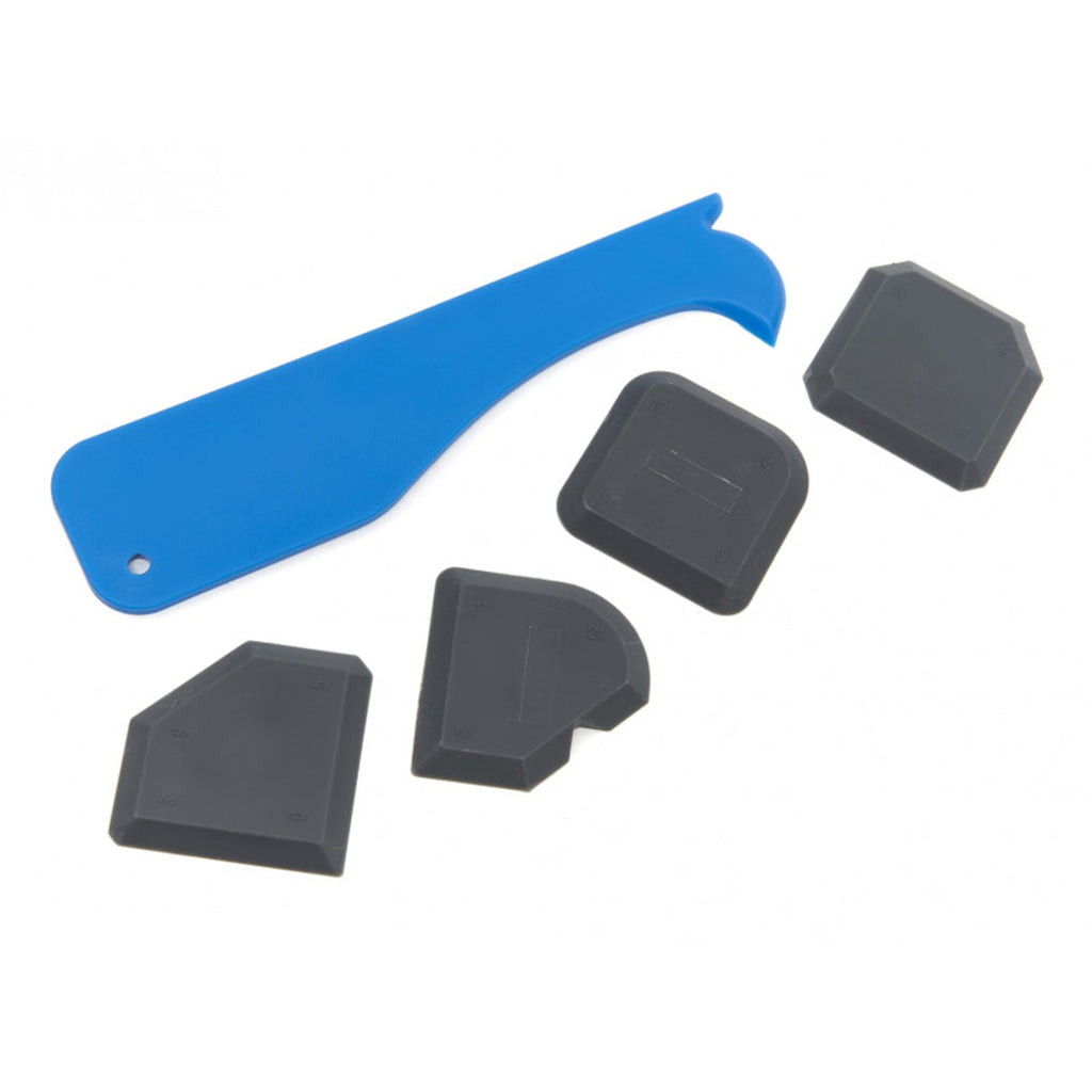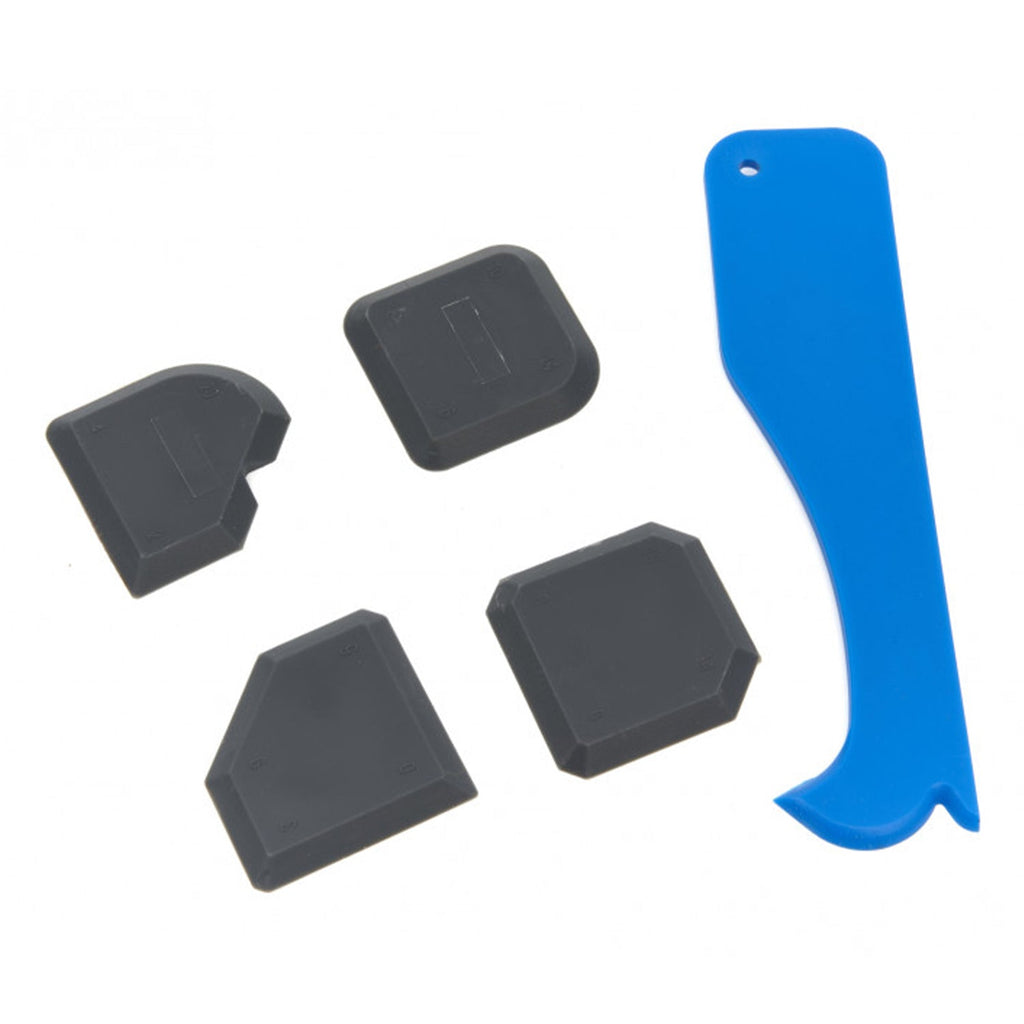 TÁTO SADA 5 ŠPACIEL NA NANÁŠANIE SILIKÓNU DO ŠPÁR je určená na vyhladzovanie silikónových škár v kúpeľniach alebo kuchyniach. Sada obsahuje plastovú špachtľu na odstraňovanie škár a 4 šablóny rôznych tvarov a rozmerov.