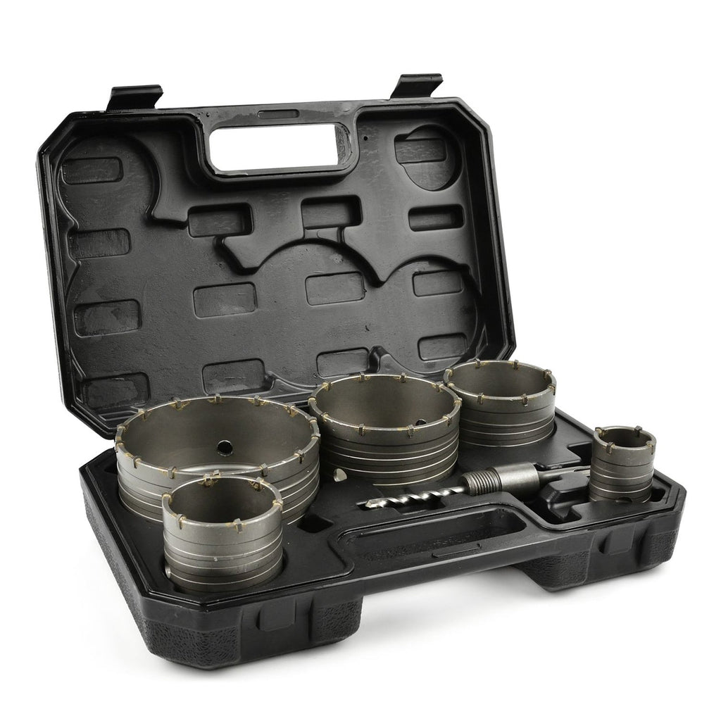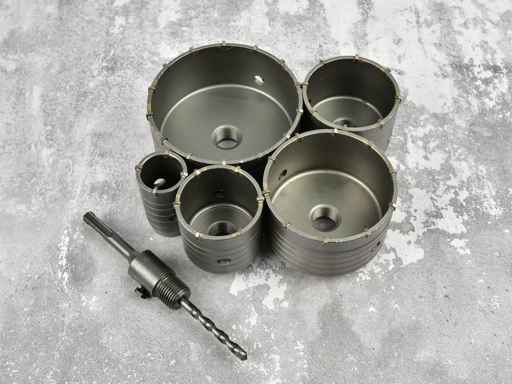 Rozmery zahrnuté v sade sa pohybujú medzi 40 a 120 mm. Ozubené okraje koruniek sú vyrobené z karbidu.