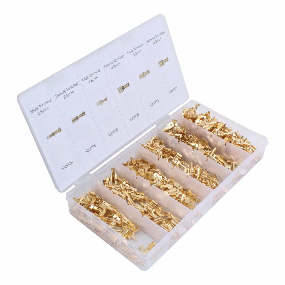 TÁTO SÚPRAVA AUTOMOBILOVÝCH KÁBLOVÝCH KONEKTOROV 600 KUSOV obsahuje 6 typov neizolovaných automobilových konektorov. Navrhnuté na krimpovanie viacžilových káblov, zaručujú pevné a trvanlivé spojenie. Môžu sa použiť v osobných a nákladných vozidlách, úžitkových autách, poľnohospodárskych a stavebných strojoch a všade tam, kde sa používajú káblové pripojenia k iným prvkom inštalácie.