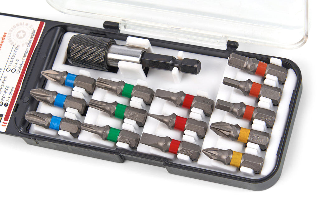 - Rozmery: 1 x PH1, 2 x PH2, 2 x PH3, 1 x PZ1, 1 x PZ2, 1 x SL4, 1 x SL5, 1 x T15, 1 x T20, 1 x T25, I3, I4, I5