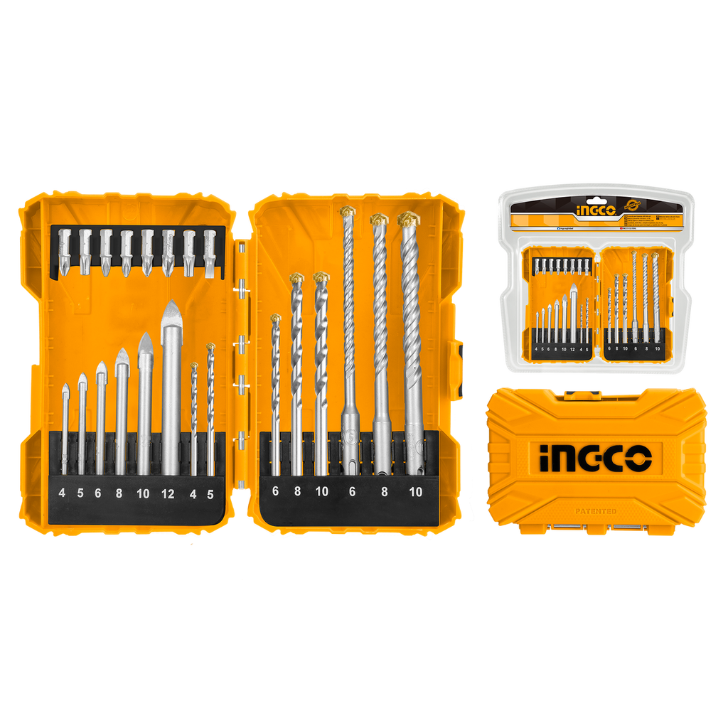 TÁTO SADA BITOV A VRTÁKOV 22 KUSOV INGCO obsahuje 22 kusov rôznych rozmerov, používaných na sklo, keramické dlaždice, murivo a betón. Všetky kusy sú uložené v plastovej krabičke.