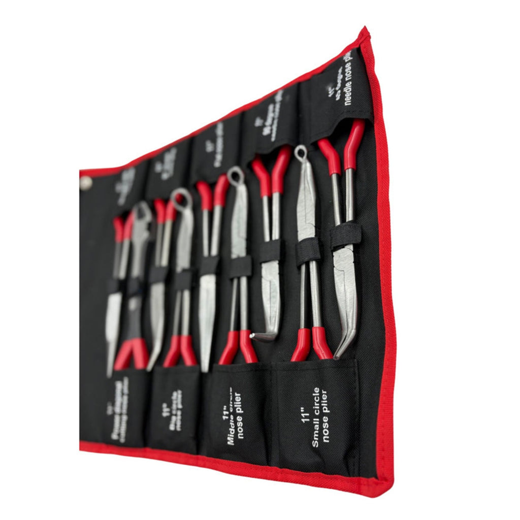 Tri z klieští sú určené špeciálne pre prácu s konektormi zapaľovacích sviečok a majú prstencové koncovky rôznych priemerov, ktoré umožňujú demontáž a montáž konektorov bez ich poškodenia – aj pri teplom motore. Ostatné kliešte pokrývajú rôzne konfigurácie – s plochými alebo ohnutými špičkami pod uhlom 45° a 90°, všetky v extra dlhej verzii, s dĺžkami medzi 260 mm a 280 mm.
