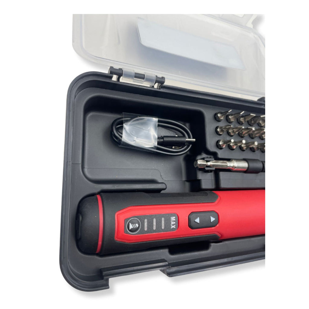 Táto SADA ELEKTRICKÉHO SKRUTKOVAČA S DOBÍJACOU BATÉRIOU 3,6V S 27 VYMENITEĽNÝMI HROTMI KB GLOBAL funguje s lítiovou batériou typu 18650 s kapacitou 1,5 Ah, ktorá sa úplne nabije za 3-4 hodiny cez port USB-C. Skrutkovač poskytuje maximálny krútiaci moment 6 Nm a voľnobežnú rýchlosť otáčania 300 otáčok za minútu. Je vybavený displejom indikujúcim stav nabitia, LED osvetlením pracovnej plochy a funkciou nastavenia krútiaceho momentu v troch stupňoch.
