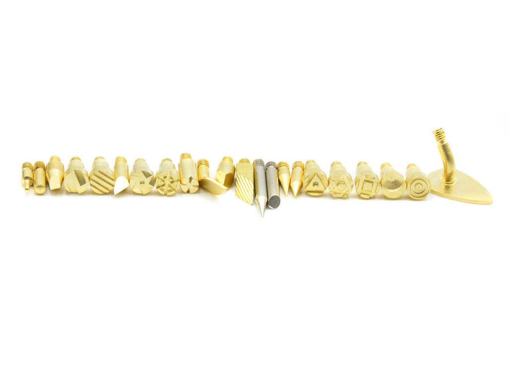 23 hrotov v sade umožňuje realizovať rôzne druhy gravúr, bez ohľadu na ich zložitosť. Plastová rukoväť je protišmyková a odolná voči teplu, čo zaručuje pohodlné a dlhodobé používanie. Priložený stojan chráni pracovné plochy a zároveň poskytuje používateľovi väčšiu bezpečnosť.