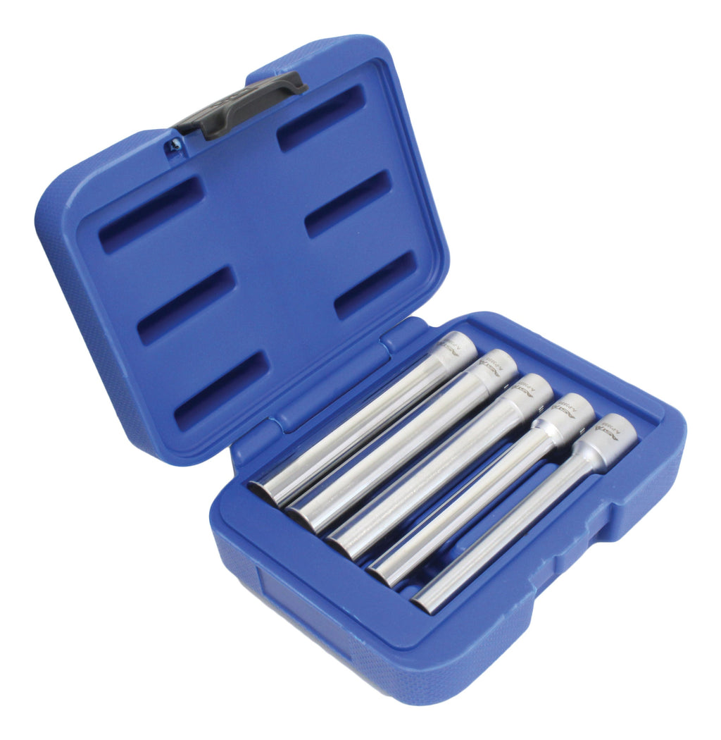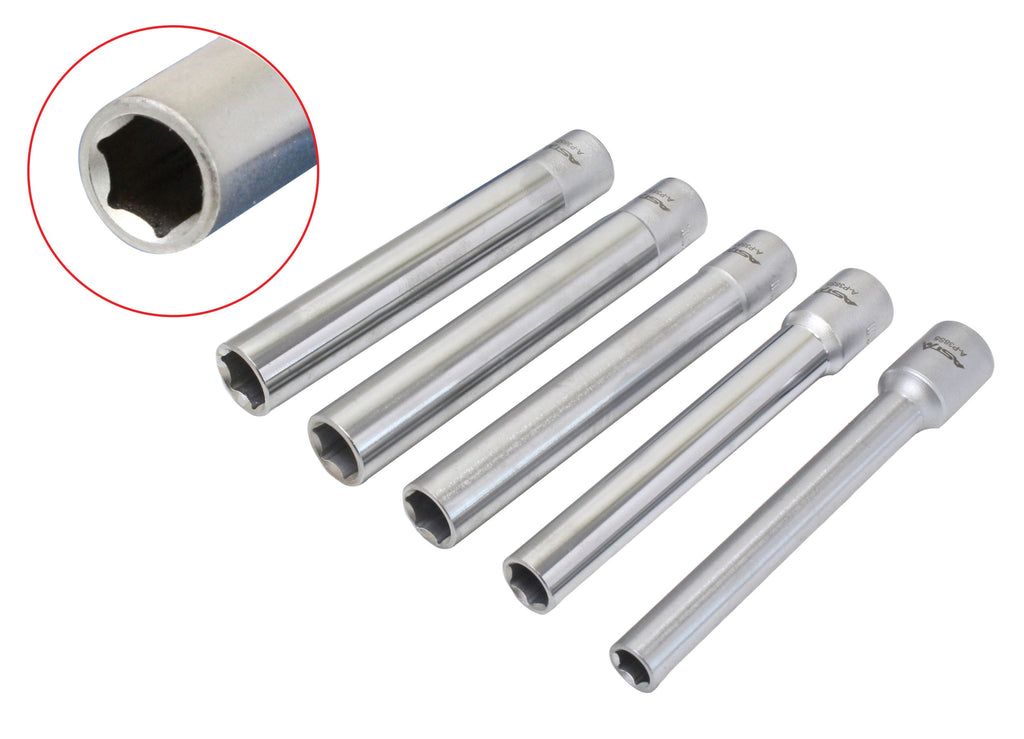 Táto SADA EXTRA DLHÝCH ŠESŤHRANNÝCH HLAVÍC 3/8 5 KUSOV sa používa napríklad na nastavovacie zariadenia ručnej brzdy pri vozidlách Opel, BMW, Ford a VAG, na veľmi dlhé skrutky, napríklad na nárazníky, zadné svetlá a konektory pántov dverí.