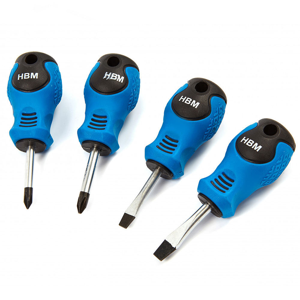 TÁTO SADA EXTRA KRÁTKYCH SKRUTKOVAČOV 4 KUSY HBM z chróm-vanádiu, ideálne na použitie na ťažko dostupných miestach.