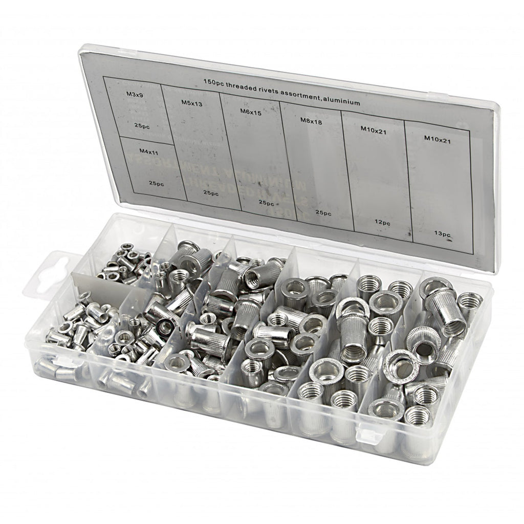 TÁTO SADA HLINÍKOVÝCH NITOVACÍCH MATÍC 150 KS je kompletná a praktická súprava, ktorá poskytuje širokú škálu odolných a ľahkých matíc. Vyrobené z vysoko kvalitného hliníka, tieto matice ponúkajú primeranú pevnosť pri nízkej hmotnosti, čo ich robí ideálnymi pre aplikácie, kde je dôležité zníženie hmotnosti.