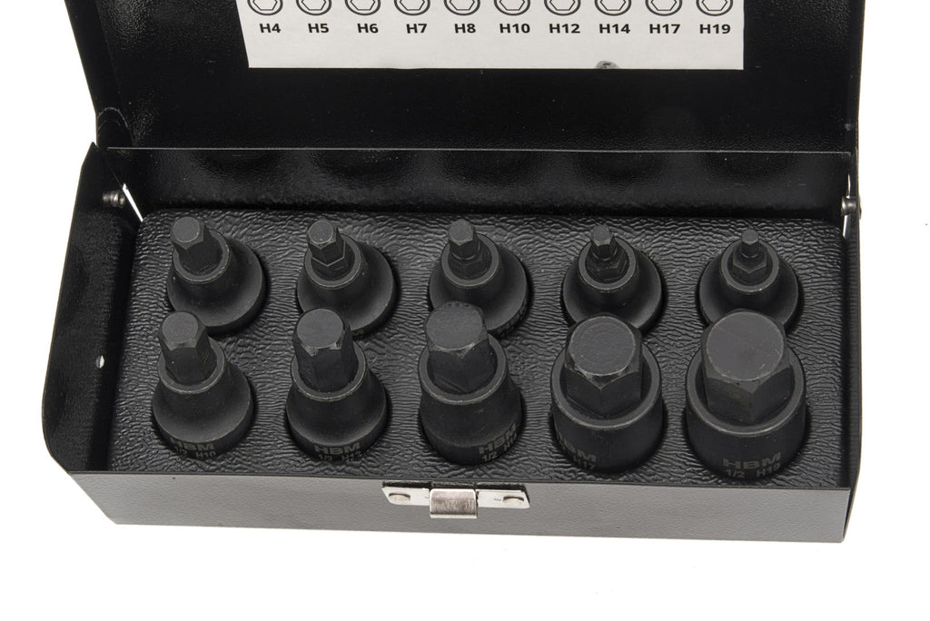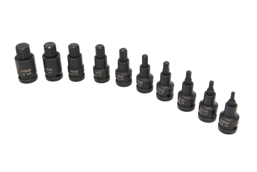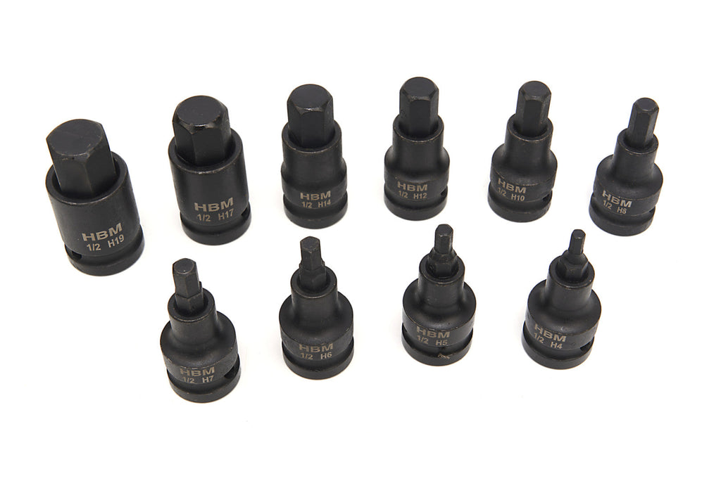 TÁTO SADA IMBUS HEXAGONÁLNYCH NÁRAZOVÝCH BITOV 1/2 H4-H19 10 KUSOV HBM pozostávajúca z 10 kusov je užitočný a univerzálny nástroj v automobilovom priemysle, mechanike a rôznych aplikáciách pri spracovaní kovov. Táto sada bitov je určená na použitie spolu s rázovým kľúčom alebo pneumatickou rázovou pištoľou, čo vám umožní jednoducho uťahovať alebo povoľovať skrutky a matice s hexagonálnou hlavou.