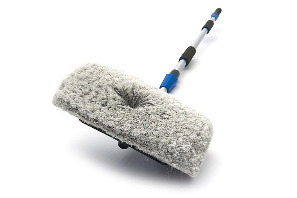 - Sada obsahuje: kefa na disky, teleskopická rukoväť, silikónová stierka, adaptér na prívod vody