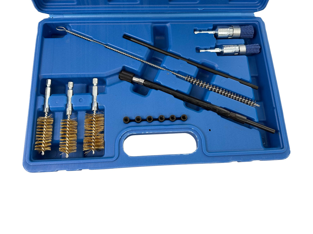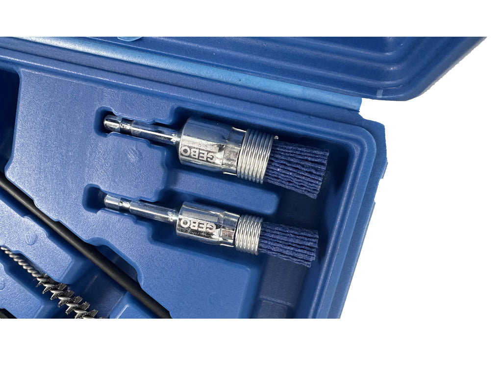 Obsahuje 3 oceľové kefy potiahnuté mosadzou na čistenie usadenín uhlíka z vnútorných stien sedla s priemerom 18mm, 22mm, 25mm. Jedna oceľová kefa je určená na čistenie otvoru trysky vstrekovača, jedna predlžovacia tyč bitov s dĺžkou 224 mm s rýchlospojkou, 6 zátok na utesnenie otvoru vstrekovača a jedna tyč na vkladanie a vyberanie tesniacej zátky, ktorá zabraňuje prenikaniu uhlíka alebo nečistôt do spaľovacej komory počas čistenia.