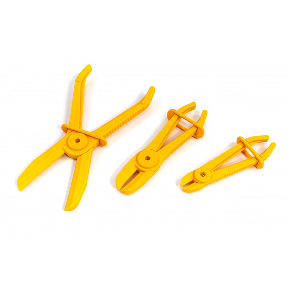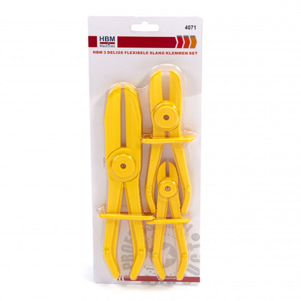 Tento SET KLIEŠTÍ NA UZATVÁRANIE HADÍC 3 KS HBM je určený na stláčanie hadíc pre kvapaliny, palivo alebo vzduch. Kliešte majú zaoblené plastové čeľuste, ktoré zabraňujú poškodeniu hadíc.
