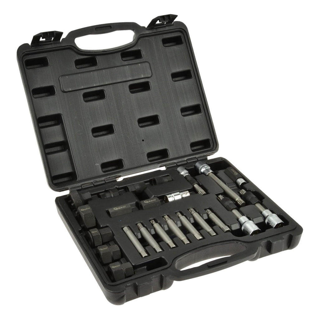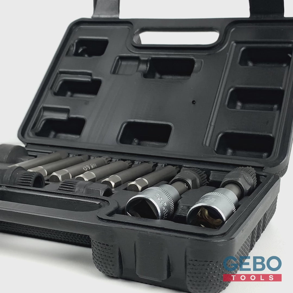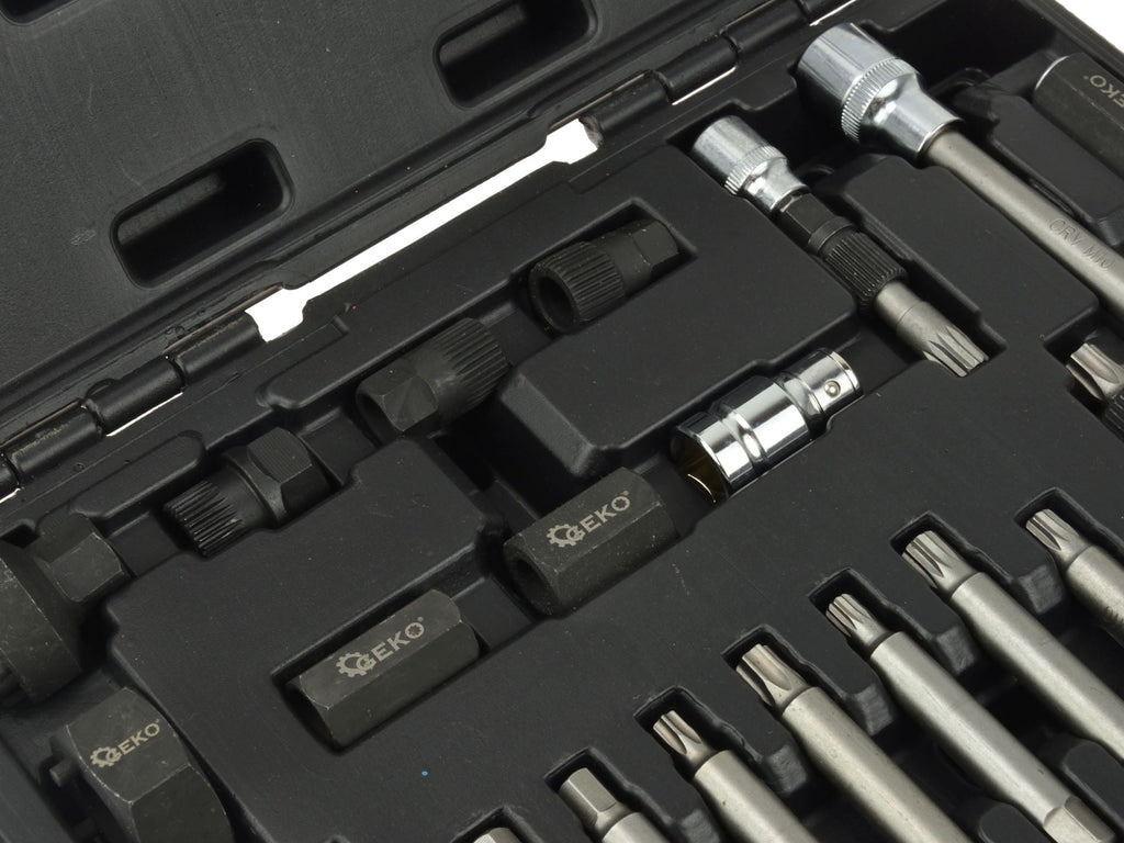 SADA KĽÚČOV KLADKY ALTERNÁTORA 24 KUSOV na montáž a demontáž. Vďaka 24 dielom, z ktorých sa sada skladá, je kompatibilná s väčšinou kladiek alternátorov Bosch, Toyota Denso, Honda, Magneti Marelli, Mercedes, Renault, BMW, Ford, FIAT, VW, Audi, Seat, atď.