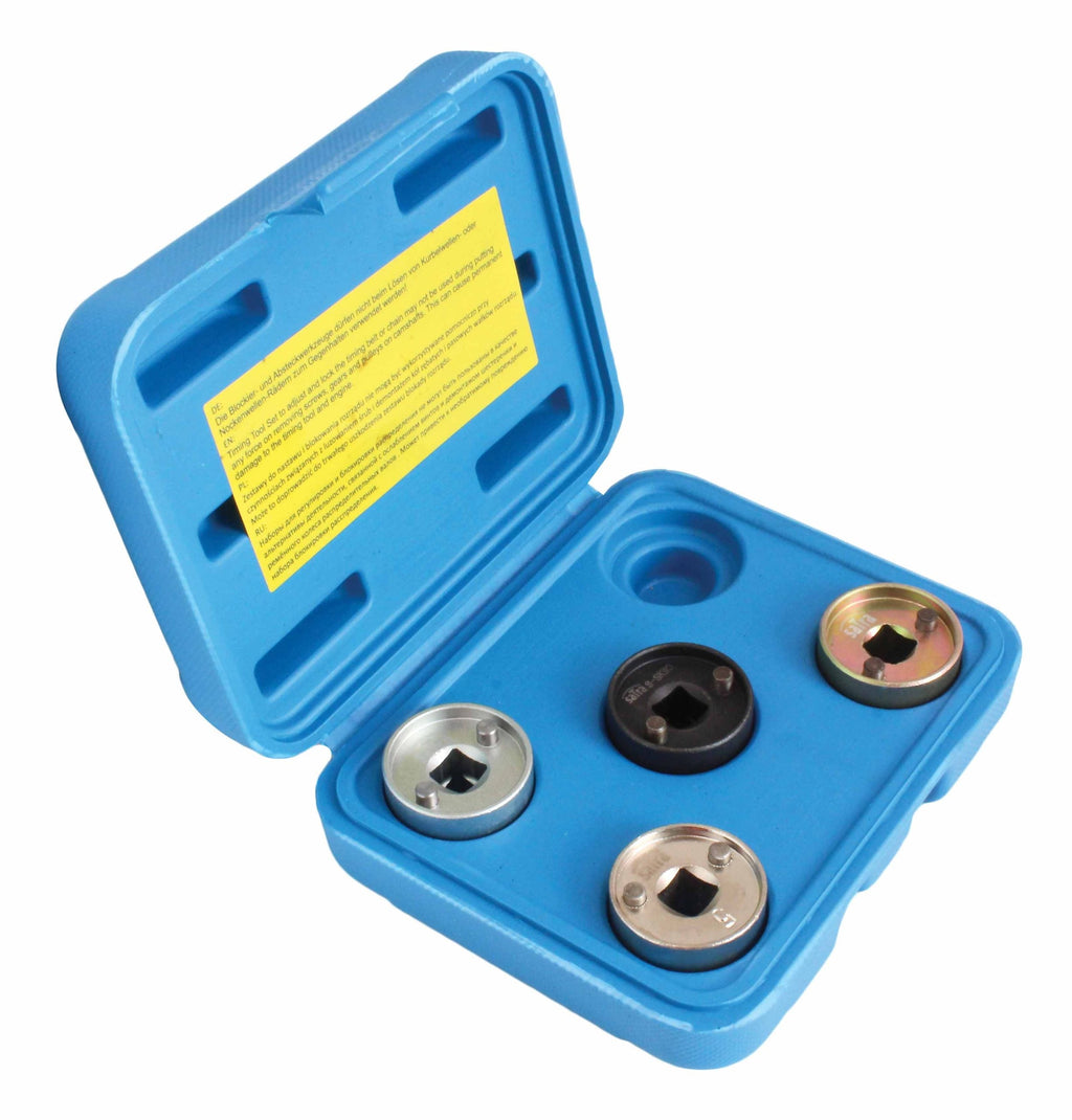 SADA KĽÚČOV NA VAČKOVÝ HRIADDEĽ VAG je tvorená z 3 adaptérov pre vačkový hriadeľ pri benzínových motoroch 1.8 L a 2.0L TFSI a TSI bez demontáže reťaze.