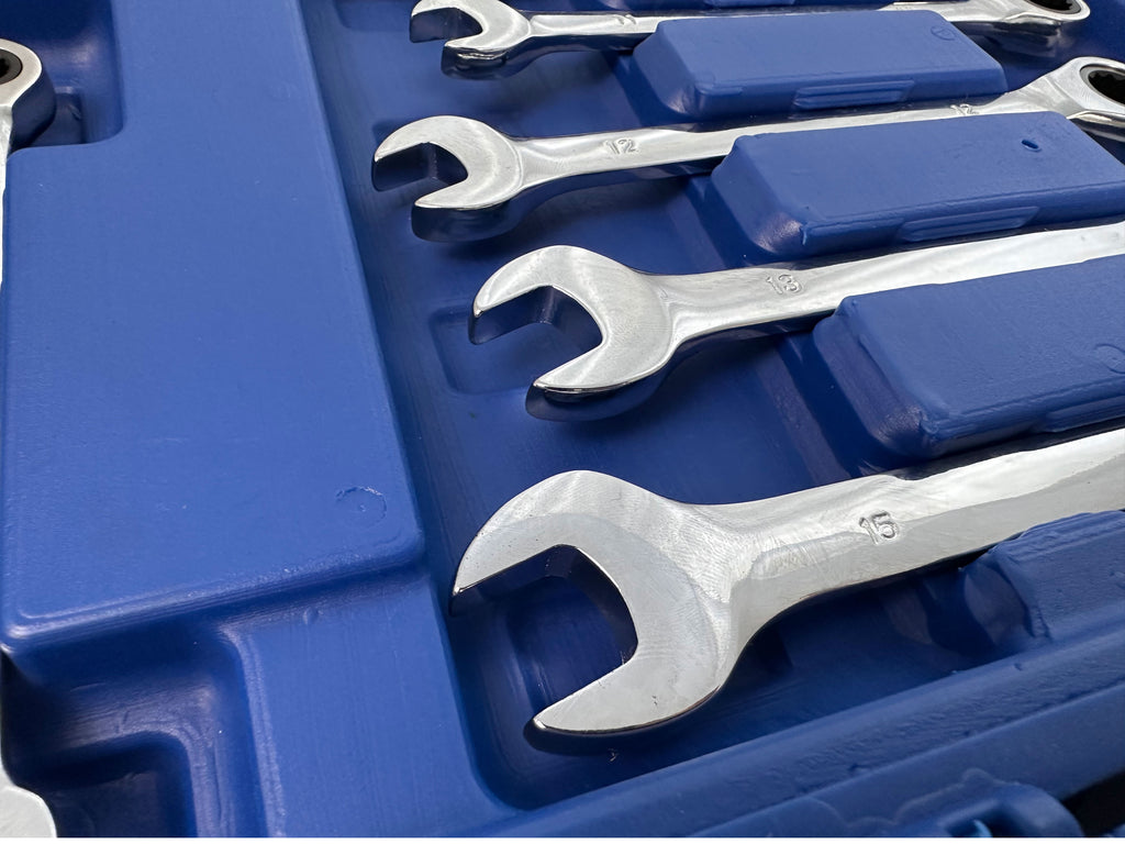 SADA KOMBINOVANÝCH KĽÚČOV S RAČŇOU 8-19MM 12 KS GEBO TOOLS má nasledujúce veľkosti kľúčov: 8, 9, 10, 11, 12, 13, 14, 15, 16, 17, 18, 19.