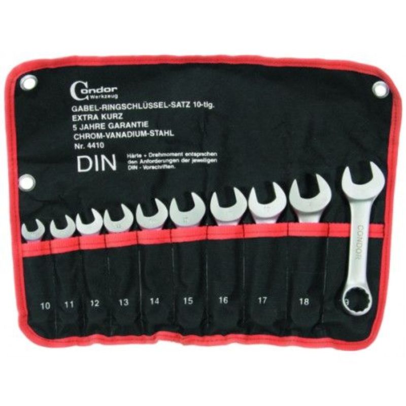 TÁTO SADA KOMBINOVANÝCH KĽÚČOV 10-19 MM je vyrobená z chróm-vanádiovej ocele. Profil očkovej časti je 12-bodový a obsahuje nasledujúce rozmery: 10 - 11 - 12 - 13 - 14 - 15 - 16 - 17 - 18 - 19 mm.