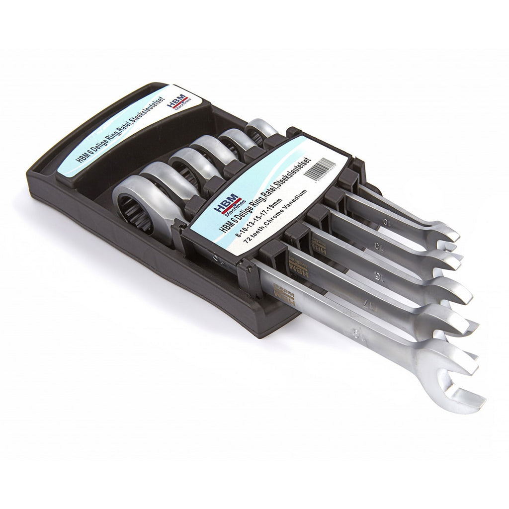 Sada kombinovaných očko-plochých kľúčov s račňou 8 - 19mm HBM