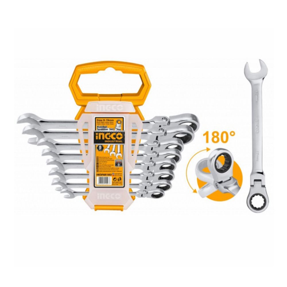 Sada kombinovaných očko-plochých kľúčov s račňou a kĺbom 8ks Ingco