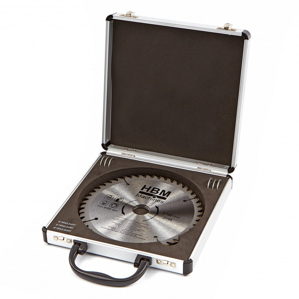 TÁTO SADA KOTÚČOV PRE OKRUŽNÚ PÍLU 160MM 3 KUSY sa skladá z 3 kotúčov vhodných pre okružnú pílu. Kusy sú uložené v hliníkovej krabici.