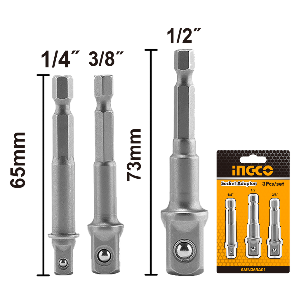 Sada 3 adaptérov na nástrčné hlavice a bity 1/4'' 3/8'' 1/2''
