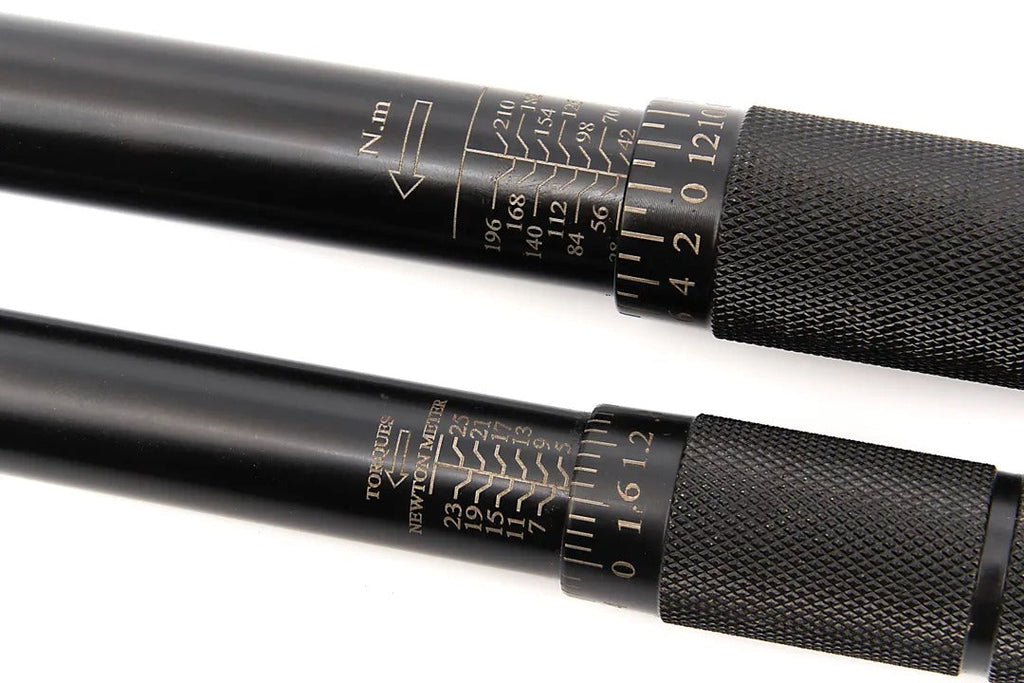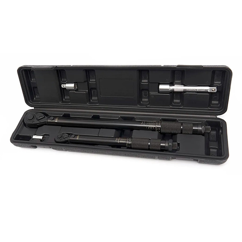 TÁTO SÚPRAVA MOMENTOVÝCH KĽÚČOV HBM HOLANDSKO 5 KS, 1/4” (5–25 Nm) A 1/2” (28–210 Nm), S PREDĹŽENÍM 125 MM A ADAPTÉROM je navrhnutá na kontrolované aplikovanie krútiaceho momentu v širokom rozsahu od 5 Nm až do 210 Nm. Obsahuje dva momentové kľúče: jeden s upínaním 1/4 palca s rozsahom 5–25 Nm, ideálny pre jemné práce, a druhý s upínaním 1/2 palca, určený na stredne náročné a ťažšie aplikácie, s pracovným rozsahom 28–210 Nm.
