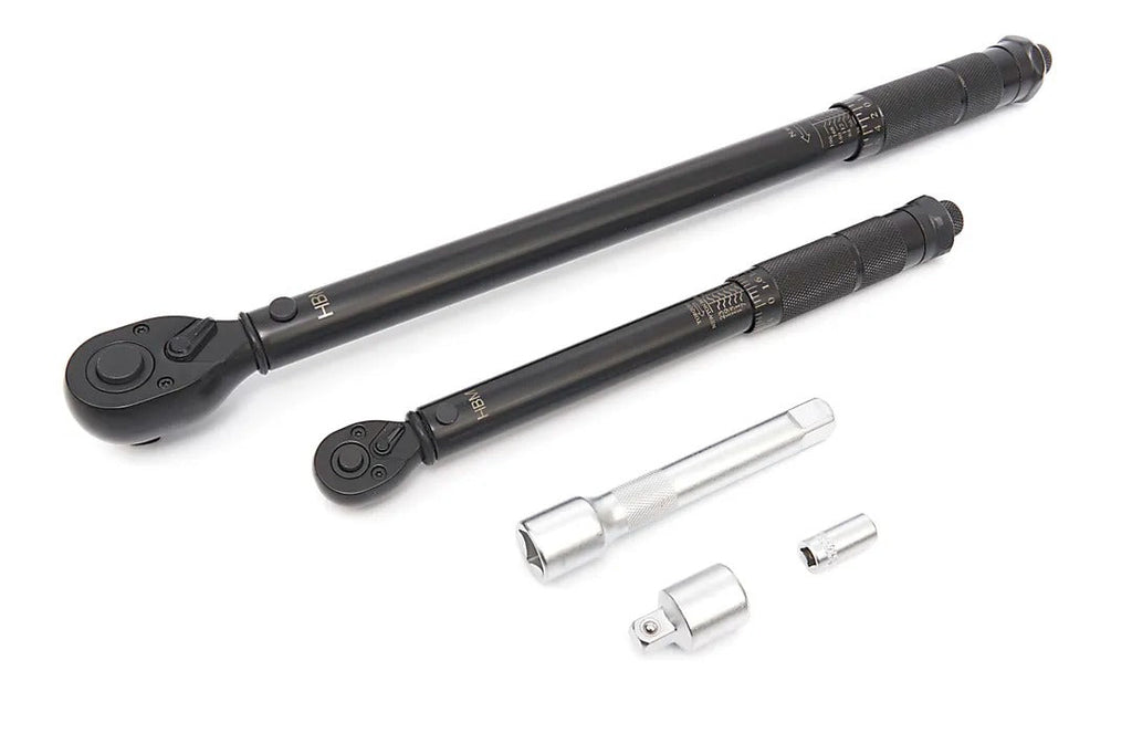Sada momentových kľúčov hbm holandsko 5 kusov, 1/4” (5–25 nm) a 1/2” (2–210 nm), s predĺžením 125 mm a adaptérom