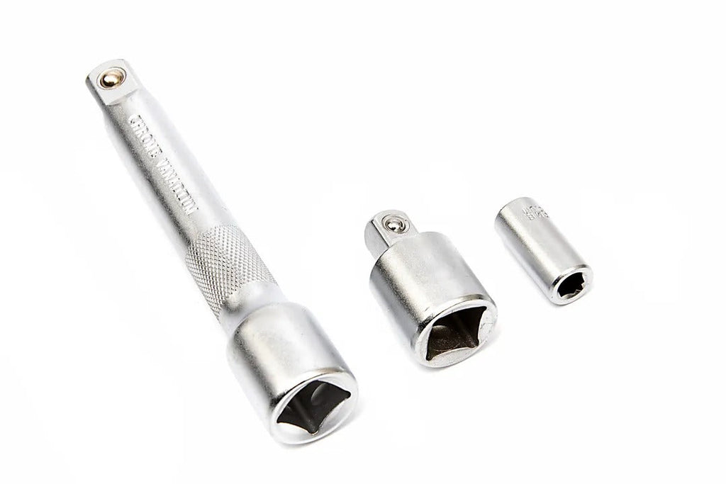Súprava zahŕňa pevné predĺženie 125 mm pre 1/2 palcové upínanie, ktoré umožňuje jednoduchý prístup aj do ťažko dostupných miest bez straty presnosti pri aplikovaní momentu. Súčasťou je aj prípojka 1/4 palca na použitie so zodpovedajúcimi nadstavcami a adaptér pre kompatibilitu medzi rôznymi upínacími systémami. Celkový rozsah momentu v kombinácii s príslušenstvom je od 2 Nm až po 210 Nm.