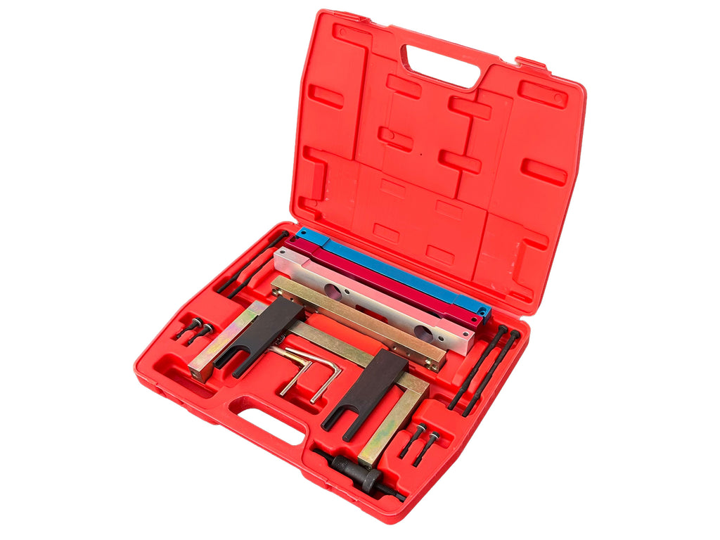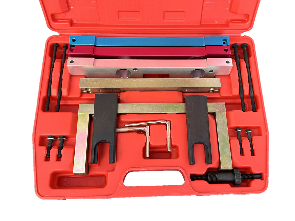 SADA NA FIXÁCIU ROZVODU BMW 2.5 3.0 BENZÍN N51 N52 N52K N53 N54 GEBO TOOLS je určená pre benzínové motory BMW s objemom 2.5 a 3.0 litra zo sérií N51, N52, N52K, N53, N54 a N55, vybavené systémom Valvetronic a v niektorých prípadoch aj technológiou TwinPower Turbo. Táto sada umožňuje presné nastavenie časovania rozvodov v polohe TDC (horná úvrať), čím zaručuje správny a bezpečný zásah do rozvodového systému.
