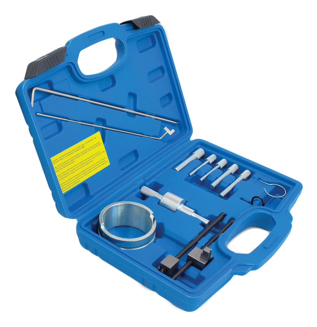 Súprava obsahuje blokovací nástroj zotrvačníka, napínač na nastavenie remeníc a blokovací napínač.