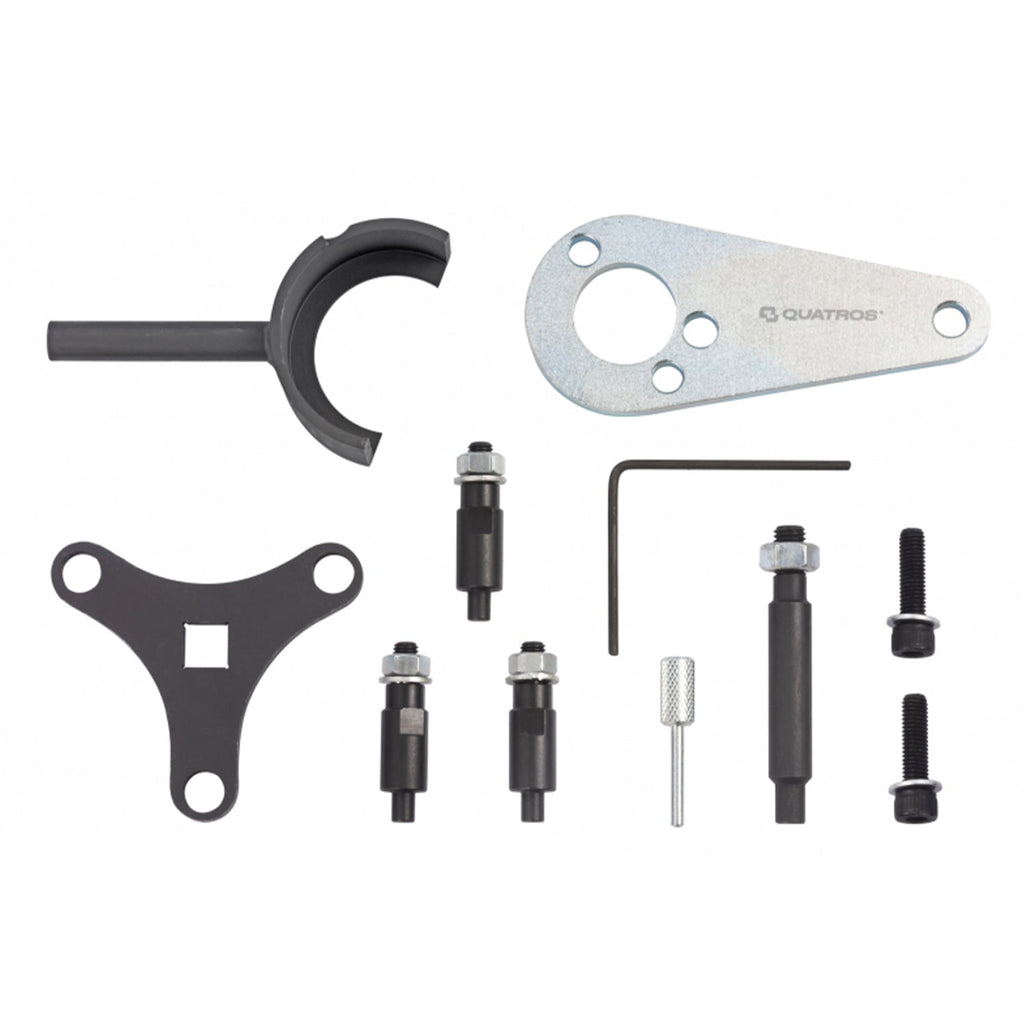 Súprava obsahuje nástroj na blokovanie kľukového hriadeľa OEM 09240-2U100, nástroj na fixáciu ozubeného kolesa vačkového hriadeľa OEM 09240-2U400, blokovací kolík vačkového hriadeľa OEM 09240-2U300, nástroj na uvoľnenie napínača rozvodového remeňa OEM 09240-2U500 a kolík na fixáciu napínača rozvodového remeňa.