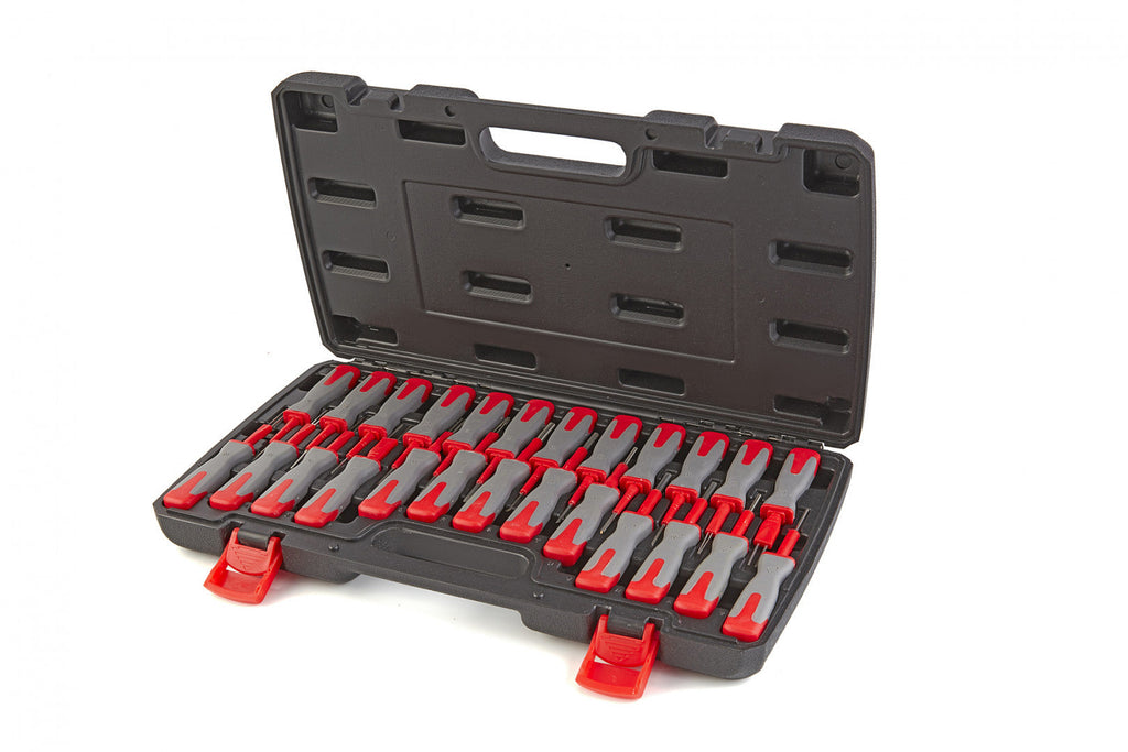 Pomocou tejto SADY NA DEMONTÁŽ KONEKTOROVÝCH TERMINÁLOV A SPOJOK 25 DIELNEJ HBM zabránite poškodeniu konektorov, ako sú ABS, klimatické senzory, rádio, PDC, moduly ťažného zariadenia a pod.