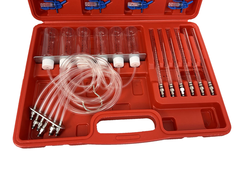 SÚPRAVA NA KONTROLU STRÁT NÁVRATU PALIVA GEBO TOOLS je určená na efektívnu diagnostiku palivových systémov s vysokotlakovými čerpadlami Common Rail. Umožňuje presné a rýchle meranie množstva paliva vracaného každým vstrekovačom, čo pomáha identifikovať úniky alebo poruchy v systéme vstrekovania. Súprava je navrhnutá na súčasné testovanie až 6 vstrekovačov. Sada obsahuje adaptéry kompatibilné s najbežnejšími vstrekovacími systémami, ako sú Bosch, Siemens, Denso a Delphi, a je vhodná pre širokú škálu vozidiel vybavených systémami Common Rail.