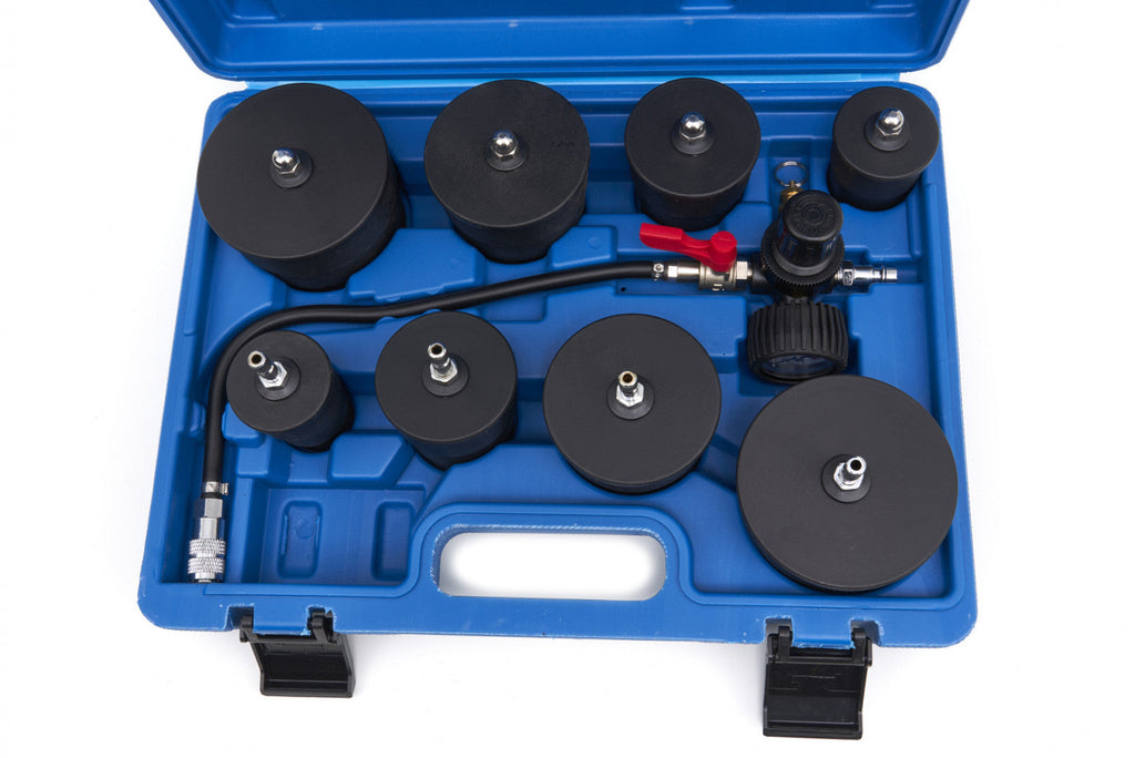TÁTO SÚPRAVA NA KONTROLU ÚNIKOV V SYSTÉME TURBODÚCHADLA je zariadenie na odhaľovanie únikov. Obsahuje 4 adaptéry pre väčšinu veľkostí hadíc. V súprave nájdete manometer, uzatvárací ventil a tlakový ventil. Všetko je uložené v kufríku.