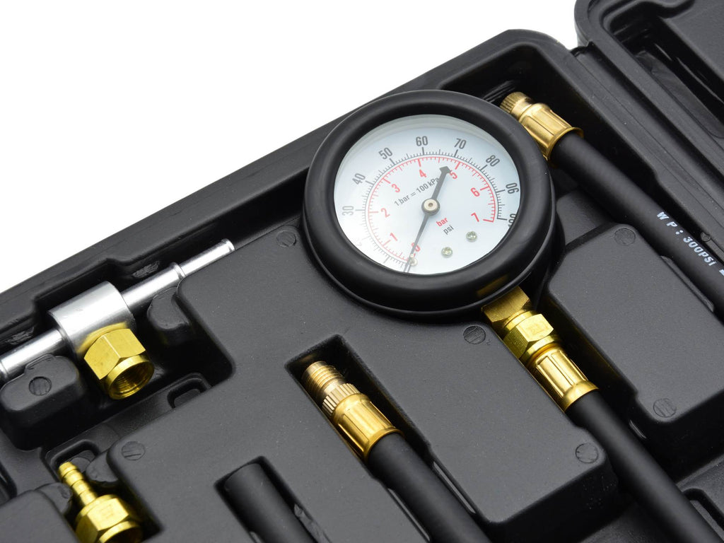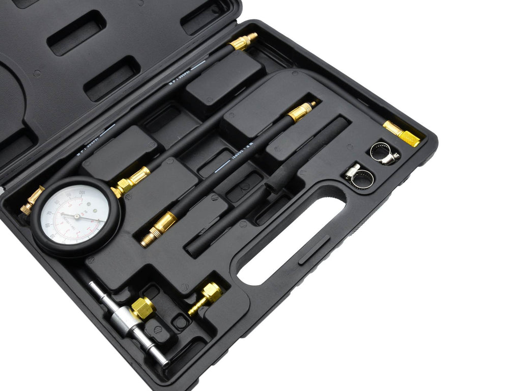 TÁTO SÚPRAVA NA MERANIE TLAKU V PALIVOVOM SYSTÉME sa používa na testovanie vstrekovacieho tlaku v benzínových motoroch.