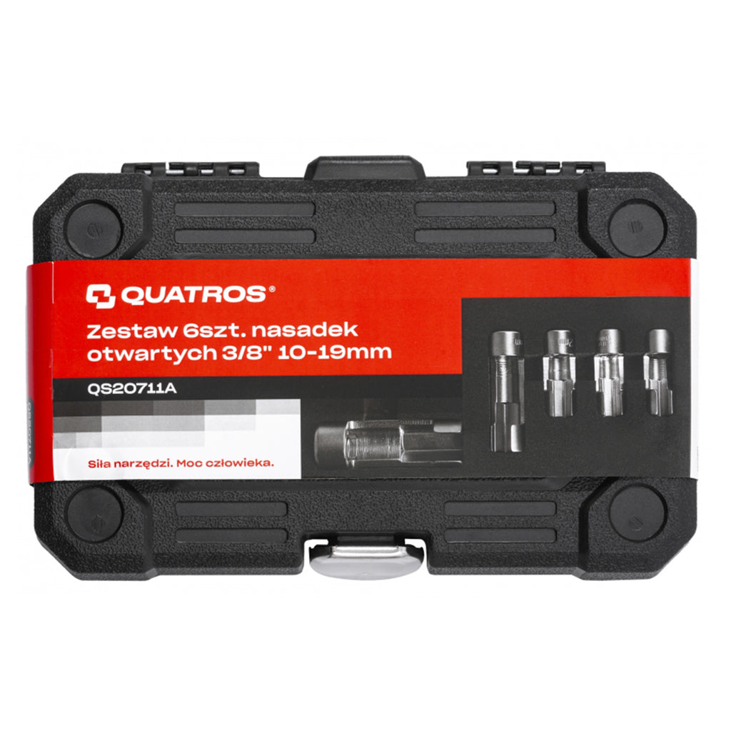 Súprava obsahuje kľúče 3/8" v rozmeroch 10 mm, 11 mm, 12 mm, 14 mm, 17 mm a 19 mm. Všetky diely sú vyrobené z chróm-vanádiovej ocele (Cr-V), ktorá zaručuje vysokú odolnosť proti opotrebeniu a presnosť pri práci.