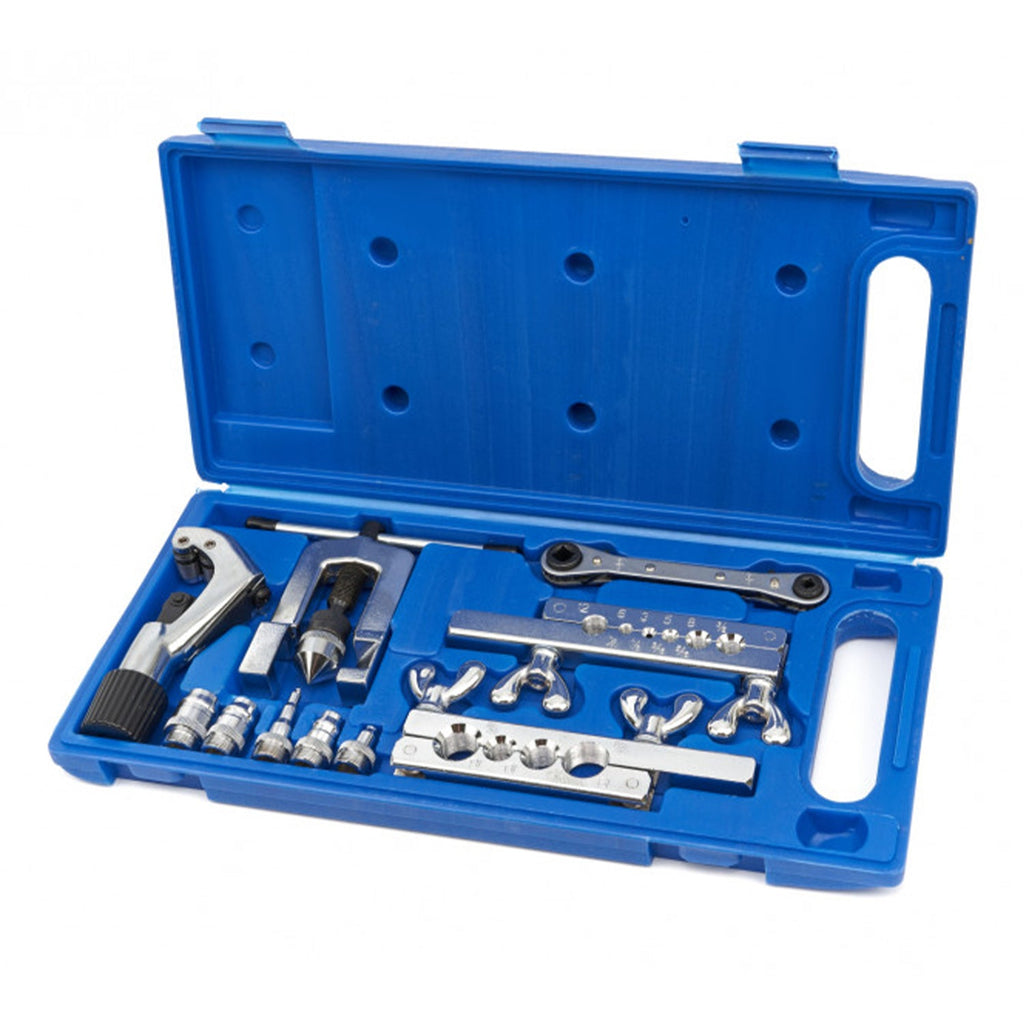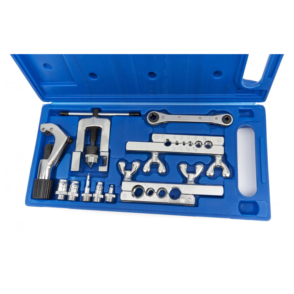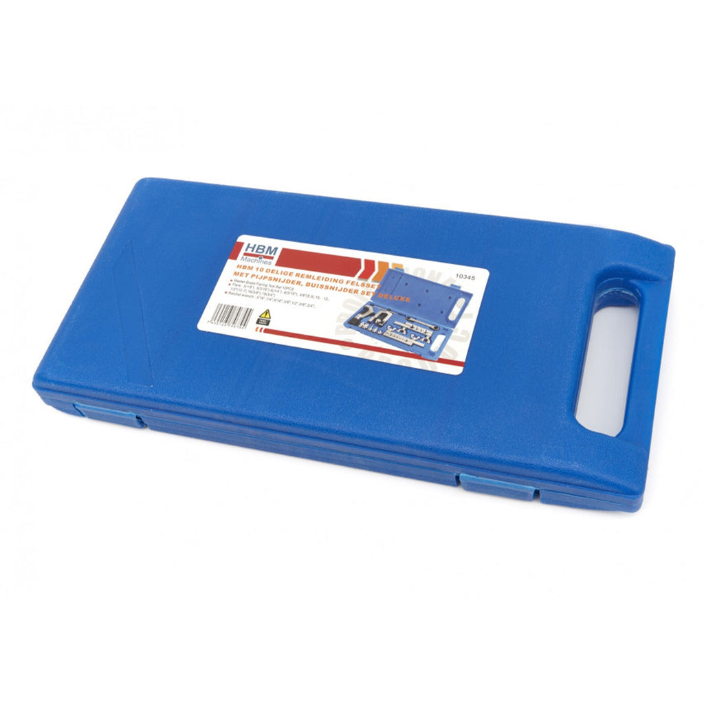 **SADA NA BERCOVANIE A REZANIE TRUBIEK HBM** je navrhnutá na opravy brzdových potrubí. Obsahuje expanzné bity pre potrubia s rozmermi 3/16, 1/4, 5/16, 3/8, 1/2, 5/8 a 3/4 mm, ako aj 2 matricové lišty s 3, 5 a 6 otvormi s nasledujúcimi rozmermi: 3/8, 10, 12, 1/2, 16 a 19 mm.