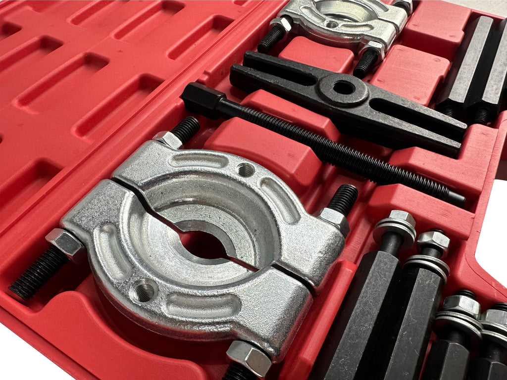 SÚPRAVA NA VYŤAHOVANIE LOŽÍSK 30–75 MM GEBO TOOLS je určená pre zavesenie kolies automobilu. Táto sada obsahuje: 2 kusy extraktorov, 4x2 predlžovacie diely a 1 držiak. Rozsah upnutia je 30–50 mm a 50–75 mm.