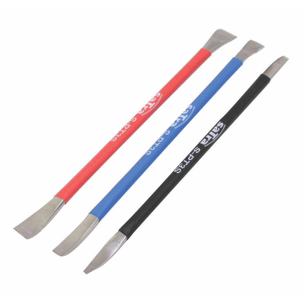 TÁTO SADA NÁRADIA NA DEMONTÁŽ ČALÚNENIA Z NEHRDZAVEJÚCEJ OCELE 3 KUSY obsahuje páky s čepeľami 3.5/5 mm, 6/10 mm, 9/12 mm. Sú ideálne na demontáž čalúnenia, odstraňovanie plastových materiálov, vnútorných tesnení, zátok a iných materiálov.