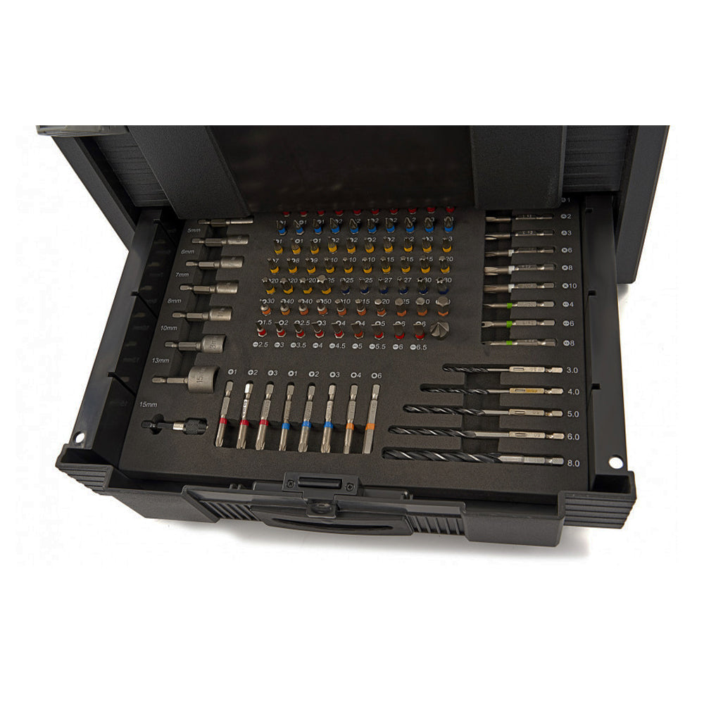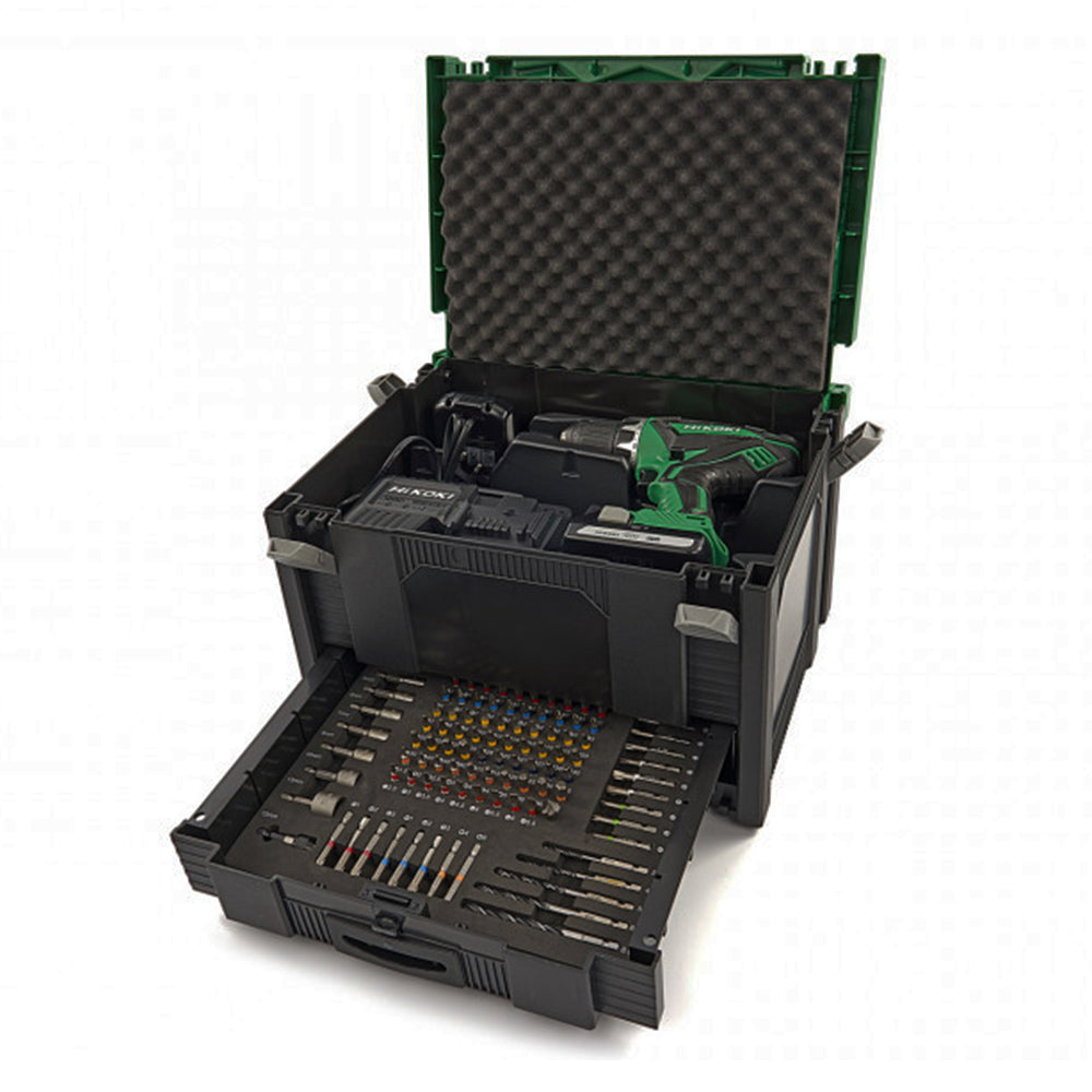 TÁTO SADA NÁRADIA S VŔTAČKOU A SKRUTKOVAČOM HIKOKI S 2 AKUMULÁTORMI 1.5 AH A NABÍJAČKOU je ideálna na vŕtanie a skrutkovanie, obsahuje viacero príslušenstiev. Vŕtačka je vybavená 22 polohami spojky a LED osvetlením, čo pomáha pri kontrole práce. Sada je vybavená 100 kusmi príslušenstva pre akýkoľvek typ operácie. Vŕtačka má 2 batérie a 1 nabíjačku a spolu s ostatnými dielmi sú uložené v kufríku.